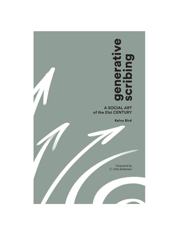 "Scribing—visually representing ideas while people talk—is a distinct social art form that facilitates group learning and cultural memory. Scribes listen and draw simultaneously, creating large pictures that integrate content, prompt insight, and aid with decision-making. “Generative scribing” extends this art by attending to the field of energy and relation between people, and to the emerging potential of a system” – Kelvy Bird (from the introduction). This book frames the key concepts that inform and cultivate a scribe’s inner capacities of being, joining, perceiving, knowing, and drawing. It is for scribes, facilitators, coaches, and organizers, and for anyone who cares about how we exist together as humans. It’s for those who want to explore their interior functioning, to approach the world anew.