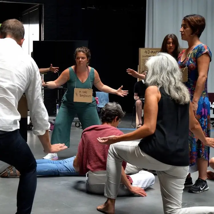 Prácticas que desarrollan la presencia encarnada y la capacidad colectiva de un equipo u organización para sentir y cultivar el campo social, donde la resonancia es la base de la creatividad.