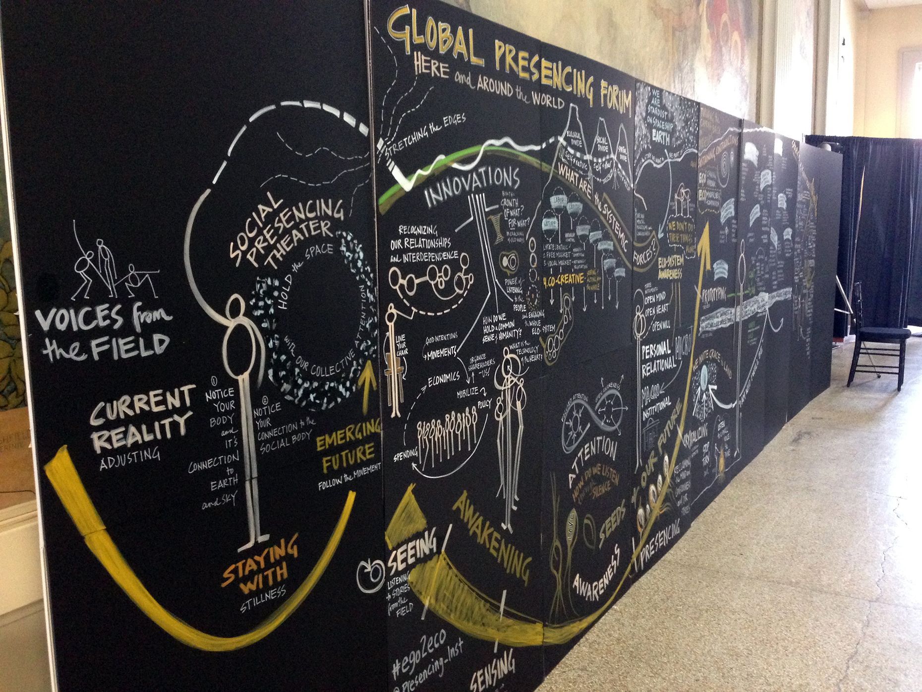 Generative Scribing extends the range of the practitioner to an entire ecosystem, while drawing with an attunement to energy. A generative scribe calls particular attention to an emerging reality that is brought to life by, and for, the social field. Because of its interactive and co-creative nature, it serves as a device for social seeing.